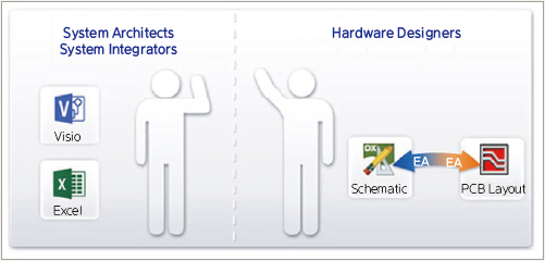 개발 팀들은 보드 내 커넥티비티를 위해 대개 스프레드시트와 같은 데스크탑 오피스 툴을 사용하며, 시스템 요소의 파라미터에는 텍스트 파일을, 블록 레벨의 시스템 구조와 계층구조를 보여주기 위해서는 드로잉 애플리케이션을 사용한다. 이처럼 서로 단절되어 있는 접근방법의 문제점은 데이터를 여러 차례 재입력해야만 할 때가 많다는 것이다. 이는 서로 다른 분야와 영역 간에 표준적인 동기화 방법이 없었기 때문이다.
