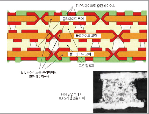 ▲ 그림 11. TLPS 페이스트 바이어스와 FR-4 내부 레이어에 대해 매립된 바이어스로 충전된 레이서
