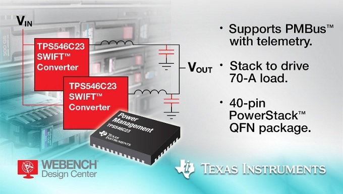 TI에 따르면, TPS546C23는 완전 차동 원격 전압 감지 기능과 PMBus를 지원해 텔레메트리가 가능하다. 또한 이 컨버터는 소형 풋프린트 패키지에 하이사이드 및 로우사이드 MOSFET을 통합함으로써 경쟁 제품보다 훨씬 더 우수한 밀도를 제공한다.