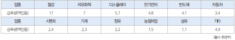 ▲ 표 1. 산업부문 업종별 2030년 감축량