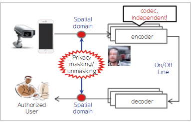 ETRI는 이 기술이 스마트폰으로 영상이나 사진의 개인정보를 자동으로 탐지 및 마스킹하고 원래의 영상을 복원하는 기술이라고 설명했다. 핵심 기술은 암호화 알고리즘이 내장된 코덱 독립형 마스킹 기술과 개인영역 탐지 기술이다.