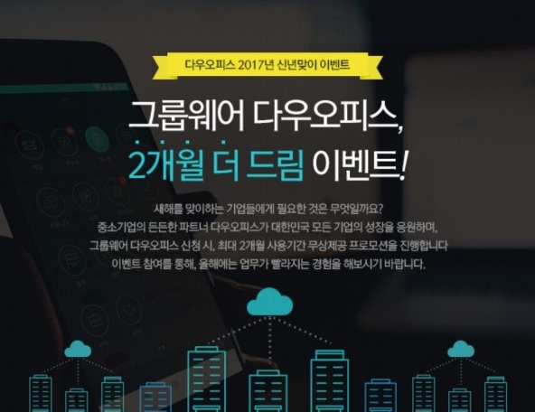 다우기술(대표이사 김윤덕)은 자사의 그룹웨어 ‘다우오피스’가 새해를 맞아 2월 28일까지 최대 2개월의 사용 기간을 무상 제공하는 이벤트를 진행한다.