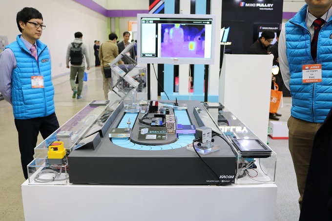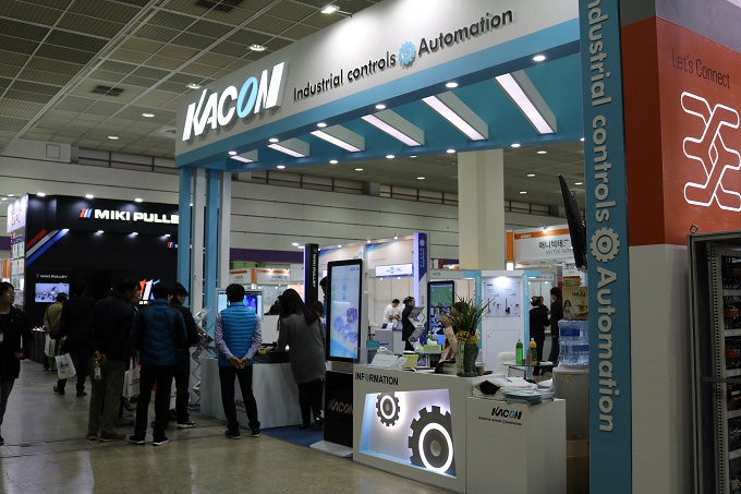 오토메이션 월드 2017에 참가한 KACON은 ICT 기술 트렌드에 맞춘 마그넷 수명 카운터 CM, 근접 센서, 신호용 터미널 블록(RXT-G04), 안전 보호 커버, 음성신호기 KSV, 온도조절기 KTM, 컬러 센서 KO91 등 다양한 제품군을 선보였다.