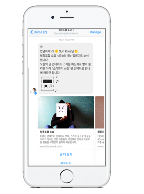 페이스북 사용 기업은 페이스북에 ➤ 업데이트된 소식이나 뉴스를 자동으로 챗봇 형식으로 사용자에게 제공할 수 있으며, 이와는 별도로 ➤ RSS 피드 기능을 이용해 콘텐츠 등을 자동으로 확보하며 ➤ 내장된 대화형 검색 서비스를 제공, 고객 서비스를 구축할 수 있도록 할 수 있다.
