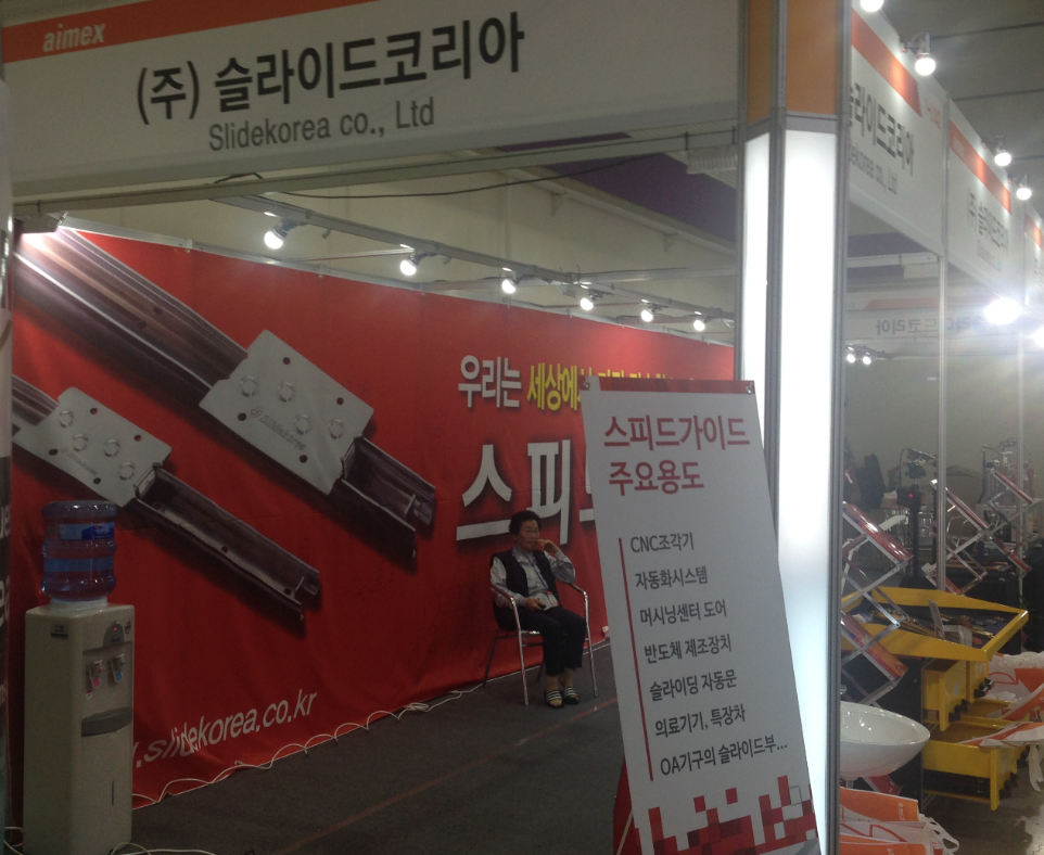 슬라이드코리아는 직선 롤러 베어링, 스피드 가이드, 슬라이드 레일 등을 선보였다.