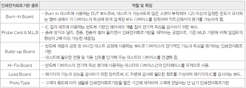 현재 모바일기기, 자동차, 디지털가전 등의 다기능화, 고성능화에 따라 정보저장, 연산제어, 증폭, 변환 등의 기능을 수행하고 있는 핵심부품인 반도체의 특징이 다품종화, 고속화, 집적화, 저전력화, 경박단소화 되고 있다. 특히 최근 IT 기기의 경박 단소화 및 융복합화에 따라 인쇄전자회로기판의 요구사항(고집적, 미세선폭, embedded, 박판화)이 크게 변화되고 있다. 이에 따라 다양한 분야의 기능이 융복합된 반도체의 수가 증가하면서 반도체산업은 주문 후 생산방식으로 다품종화 되었으며, 전방산업의 제품주기가 짧아짐에 따라 반도체 제품의 설계 생산 주기도 매우 빨라지고 있다. 따라서 반도체 생산 메이커는 많은 비용을 반도체 검사용 특수 인쇄전자회로기판 개발에 투입하고 있으며, 고정밀/고신뢰성 특성을 요구하고 있다.