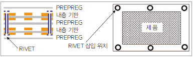 4층 이상의 초다층 인쇄전자회로기판 제작의 경우, 크게 Rivet lamination, Pin lamination, Bonding lamination의 3가지 제조 기술이 있다. Rivet lamination은 Pin lamination과 개념적으로 유사한 기술이며, 차이점은 pin이 고정된 지그 형태를 사용하는 반면, rivet은 형태가 고정되어 않은 guide 형태를 사용하여 제작 가능한 인쇄전자회로기판의 디자인 한계가 없다는 장점이 있다.