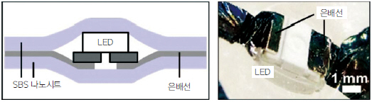 ▲ 그림 3. SBS 나노 시트에 LED 점등 회로를