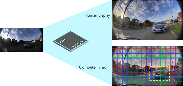차세대 ISP는 디스플레이에서 렌더링 할 수 있는 데이터를 생성하는 동시에 데이터를 컴퓨터 비전 엔진이 사용할 수 있도록 처리해야 한다. 이 두 작업의 요건은 실질적으로 상반된다. Mali-C71은 단일 영상 파이프라인에서 서로 다른 두 가지 출력을 지원하는 하드웨어 IP를 지원한다.