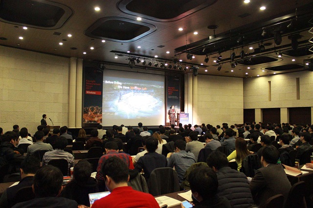 이후 진행된 기조연설에서 KT 인프라연구소 이종식 상무는 내년도 평창올림픽에서 선보일 5G 시범서비스의 개요와 이후 KT의 5G 전략 및 비전에 대해 설명했다. ‘무선통신(Wireless)’, ‘사물인터넷(IoT)’ 그리고 ‘오토모티브(Automotive)’ 세 개의 트랙으로 나뉘어 18개의 기술 세션을 진행했고, 각 섹션별로 많은 참석자들이 몰려 신기술 측정에 대한 높은 관심을 입증했다.