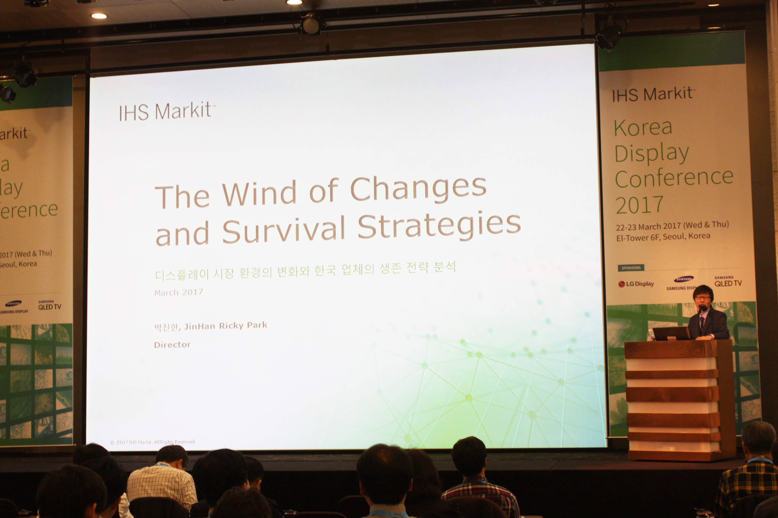 3월말 iHS Markit에서 개최한 2017 한국디스플레이컨퍼런스에는 국내외 총 16명의 연사가 참여해 국내뿐만 아니라 글로벌 디스플레이 시장이 어떤 길을 걷고 있는지, 앞으로 어떻게 나아가야 하는지 예측했다. 그중 3개의 발표를 요약했다. 먼저 첫 번째 발표인 박진한 이사의 ‘디스플레이 시장 환경의 변화와 한국 업계 생존 전략 분석’에 대해 소개한다.