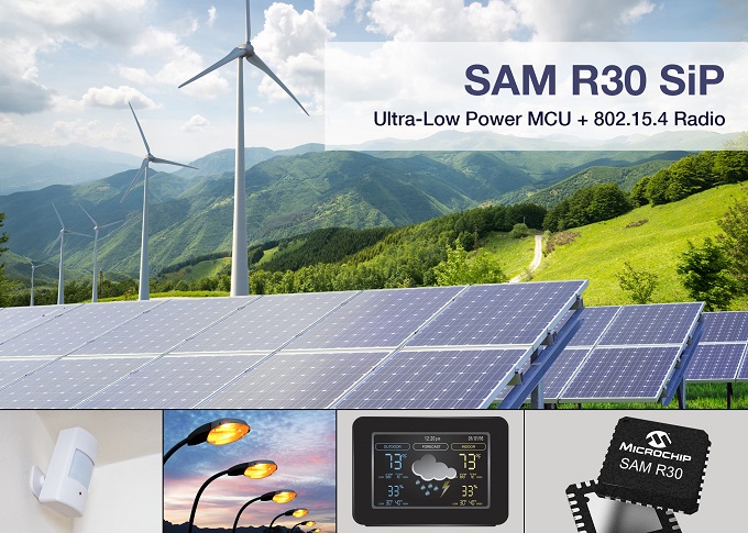 마이크로칩네크놀로지가 단일 칩 RF 마이크로컨트롤러(MCU) SAM R30 시스템 패키지(System in Package)를 출시했다.