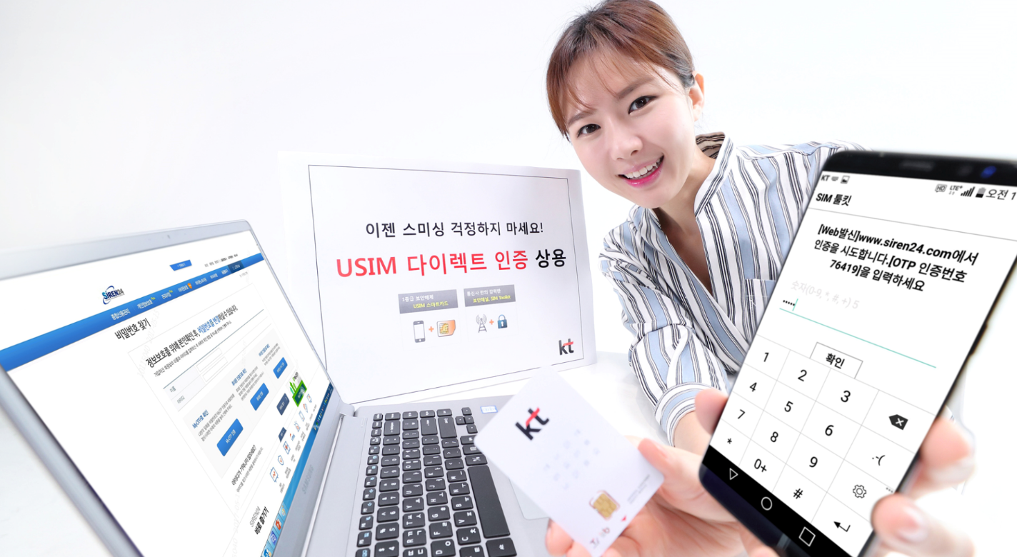 KT에 따르면 이번에 선보인 ‘USIM 다이렉트 인증’은 STK(Sim Tool Kit)라는 휴대폰 개통에 사용하는 안전한 통신 채널을 활용하며, STK 통해 인증정보가 USIM으로 전송되기 때문에 고객의 단말기에 인증정보가 남지 않아 스미싱 우려가 없다.
