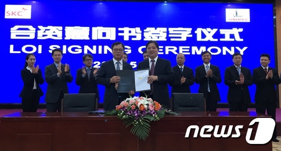 SKC는 24일 시노펙의 자회사 SVW의 합작사 설립을 위한 투자의향서(LOI)를 체결했다.© News1