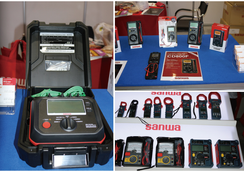 전자계측기 메이커인 산와의 제품을 전시회에 들고 나왔으며, 그중에서도 핸드헬드 타입의 디지털 멀티미터와 클램프 미터, 절연저항기가 주력 제품입니다. 산와 제품의 가장 큰 장점이라고 하면 높은 신뢰도를 꼽을 수 있습니다.