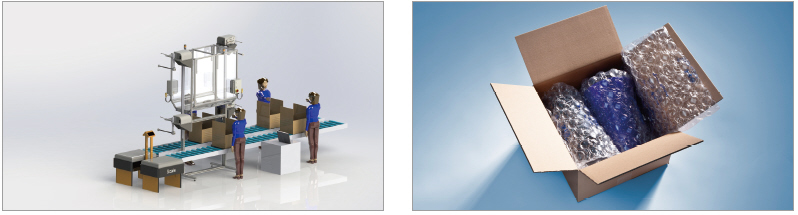 완충재 공급과 함께 작업 현장을 고려하여 인체공학적으로 설계된 단독 포장기계 stand-alone 또는 자동화된 통합 포장시스템 Integration System을 주요 물류센터들에 설치하여 좋은 평가를 받고 있다. 특히 통합 포장시스템의 경우 작업환경개선은 물론 작업자의 효율성을 증가시켜 포장작업에 드는 시간 및 비용을 대폭 감소시켜준다.