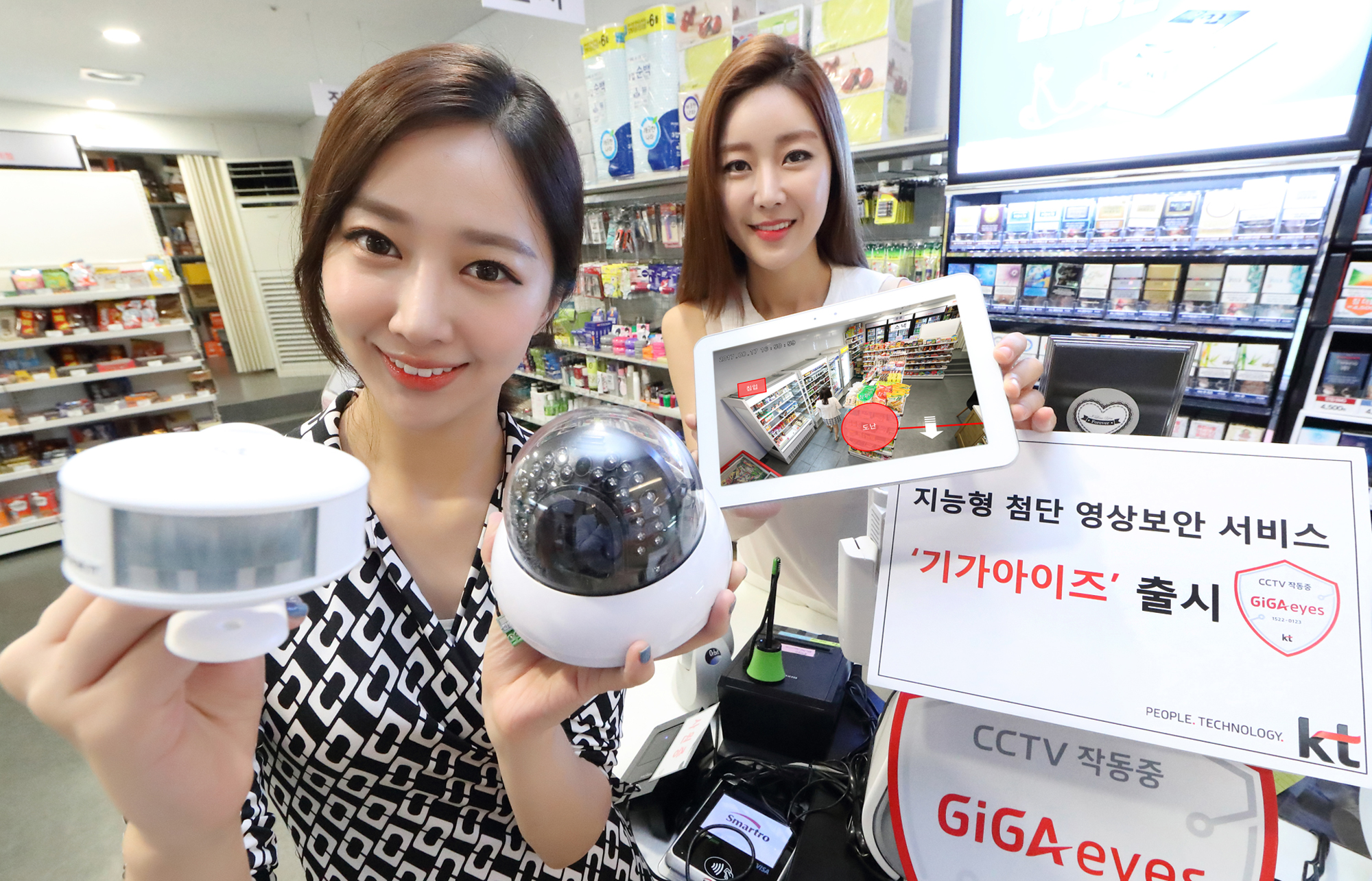 ‘기가아이즈’는 사업장에 설치된 IP카메라로부터 수집된 영상을 KT 지능형 영상보안 플랫폼에 저장, 분석해 고객에게 고화질 모니터링 영상을 실시간으로 제공하는 서비스다.
