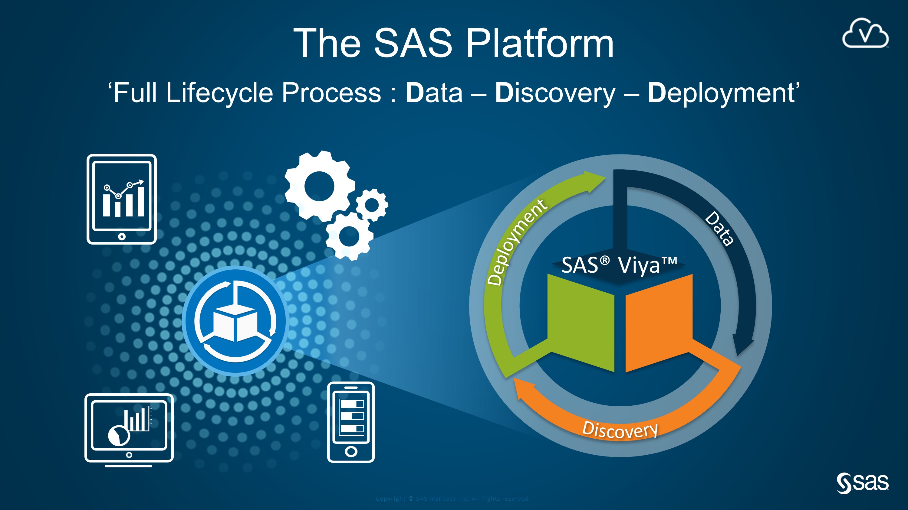 SAS코리아에 따르면 데이터 규모가 방대해지고 생성 속도가 빨라지는 가운데 기업은 데이터 분석을 폭넓게 활용하고 있고, 분석 소프트웨어 시장도 다양한 솔루션과 기술로 활성화돼왔다. 그러나 여러 종류의 데이터와 기술이 분산되어 있고 분석 프로세스가 표준화되어 있지 않아데이터 가치를 극대화지 못하고 있따. 데이터(Data)-탐색(Discovery)-배치(Deployment)에 이르는 분석 라이프사이클을 가속화할 수 있도록 하나의 프로세스를 구현해야 한다는 것이 SAS코리아 설명이다.