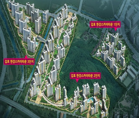 조합측에 따르면, 단지는 중봉근린공원과 걸포스포츠공원 등이 가깝다. 김포한강스카이타운은 총 5,214세대 3개 단지로 나눠져 있으며 현재 1단지 635세대가 마감된 상태다. 2단지 3,089세대는 분양 중이며, 3단지 1,390세대의 경우는 추후 일반 분양 예정이다.