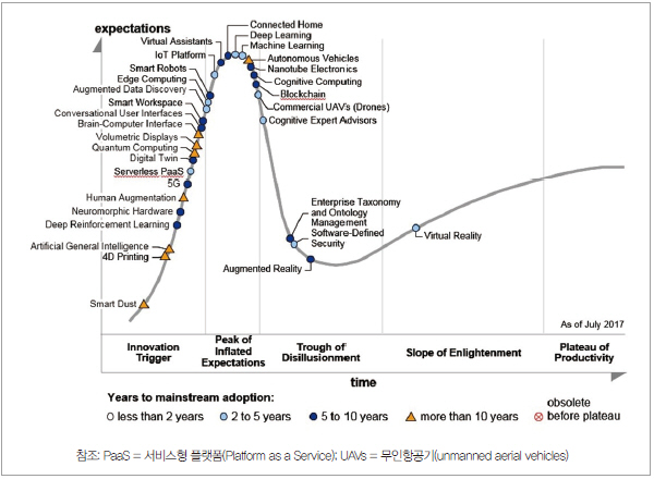 ▲ 그림 1. 2017년 신기술 하이프 사이클 <출처: 가트너(2017년 7월)>