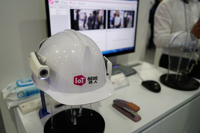 ▲ LG유플러스의 스마트플랜트 모델 중 하나인 'IoT헬멧'