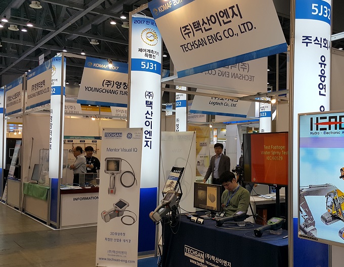 택산이엔지는 한국기계전에 참가해 첨단 기능을 갖춘 산업용 내시경(Mentor Visual iQ)을 소개했다. 이 제품은 빠른 프로브 교환과 터치스크린으로 생산성을 향상시키고, 3D 위상 측정과 HDR 이미지 구현이 가능하다.