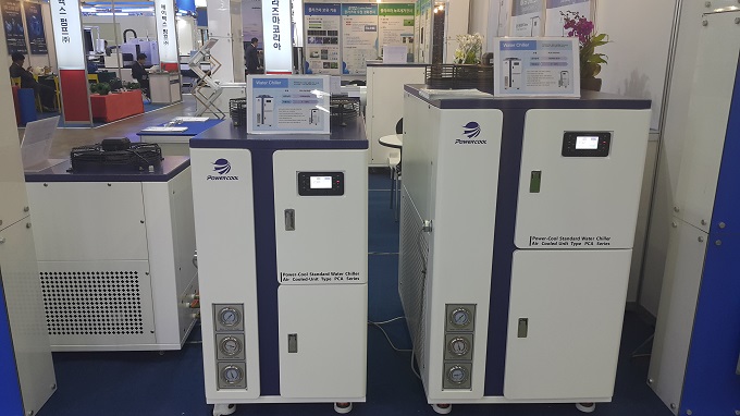 파워쿨이 한국기계전에서 선보인 산업용 냉각기 공냉식 일체형(중형) PCA-3A, PCA-5A 모델은 실외기, 실내기가 일체로 구성된 제품으로 콤팩트한 디자인으로 설계되어 있다. 이 제품은 고성능, 저소음의 컴프레서가 내장되어 있어 냉동 기능이 우수하며 높은 내구성과 정밀 온도제어 장치를 장착하여 고효율 냉각 능력을 극대화했고 사용온도 범위도 폭넓게 조정할 수 있다.