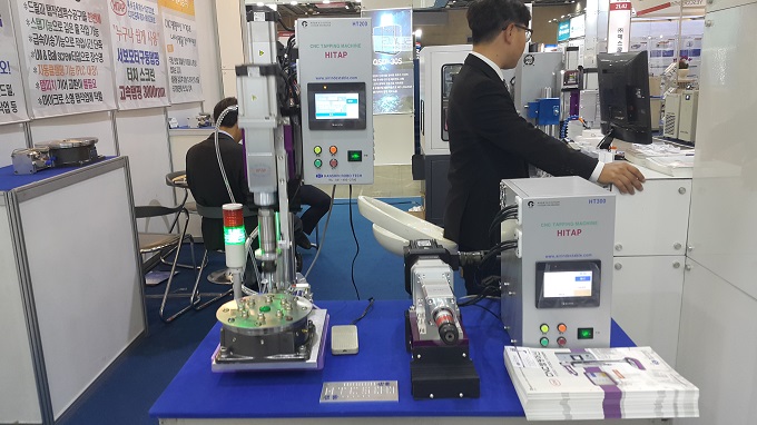 한국기계전에 참가한 한신로보테크는 태핑머신, 태핑센터를 선보였다. 태핑센터(미니) HTC500 모델은 초정밀 태핑을 위해 설계된 소형 사이즈로 드릴, 태핑, 엔드밀, 커팅 등의 기본 기능에 전체 서보 모터(x, y, z축)로 구성되어 성능이 우수하며 휴대폰, 자동차, 전기전자, 통신, 금형부품 등에서 높은 기능을 발휘한다.