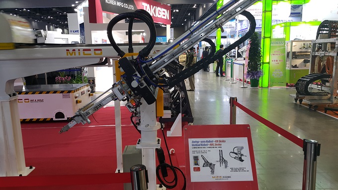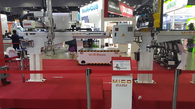한국기계전에 참가한 미코명진은 5축 서보 F5 시리즈(5 Servo Motor Driven Robot)를 전시했다. 이 제품의 모든 공간은 유지보수를 용이하게 하기 위해 개방형 모듈식으로 디자인되었다. 또한 고정밀 슬라이드 레일은 저진동과 고속 이동을 위해 정밀 가속기와 연동되어 구동된다.
