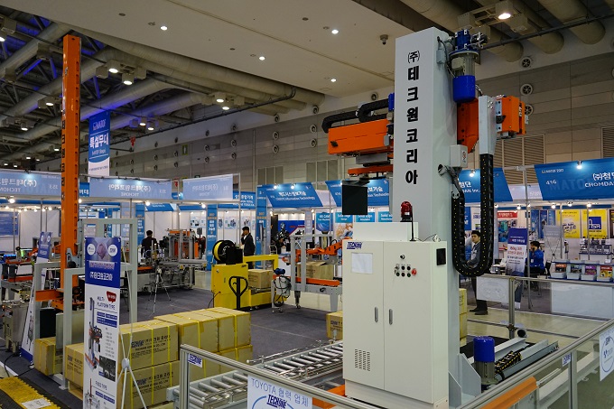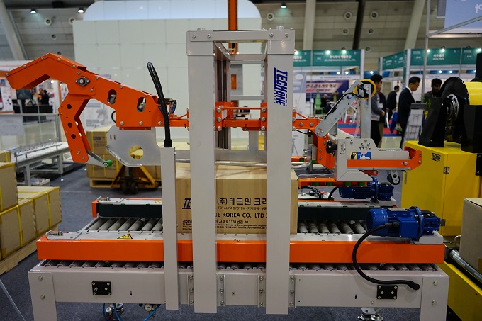 테크원코리아(Techone Korea)는 10월 31일부터 11월 3일까지 창원 국제 컨벤션센터에서 열리는 ‘창원국제생산제조기술전 및 컨퍼런스(이하 MATOF2017)’에 참가하여 팔렛타이저, 박스 쉐이핑, 테이핑 머신 등의 포장 설비를 선보였다.
