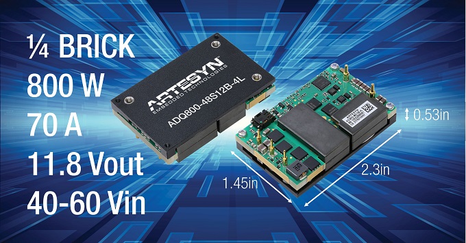 Artesyn이 텔레콤 네트워크와 데이터 센터 장비에 요구되는 뛰어난 효율과 열적 성능을 제공하는 새로운 800W 1/4 브릭 절연 DC-DC 컨버터인 ADQ800 시리즈를 발표했다.