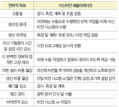 ▲ 표1. 전략적 목표를 충족할 수 있도록 지원하는 머신비전