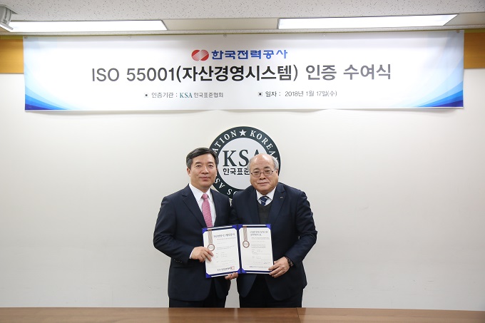 한국전력공사(사장직무대행 김시호)는 17일(수), 한국표준협회로부터 ‘ISO 55001 자산경영시스템’ 인증을 취득했다.