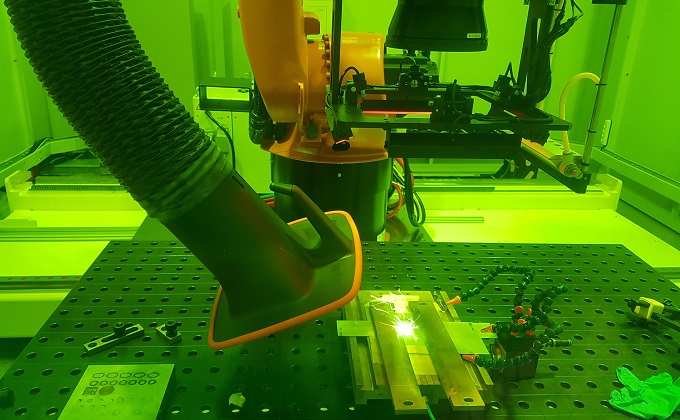 ▲한국기계연구원 부산기계기술연구센터 서정 박사 연구팀이 레이저를 이용하여 알루미늄 용접을 하고 있다.