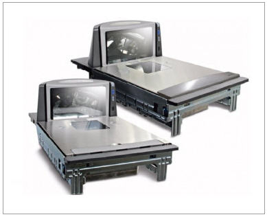 인 카운터: 인 카운터 스캐너는 프리젠테이션 스캐너와 유사하지만 판독기 바로 앞에 바코드를 표시한다. 그러나 카운터 톱에 포함되도록 만들어졌다. 식료품점 및 셀프 체크 아웃 라인에서 이러한 유형의 스캐너를 접할 수 있다. 데이타로직 Magellan 8300(그림 4)과 같은 장치는 모든 사용자가 조작하기 쉽다. 많은 모델에는 POS 레인을 완벽하게 지원할 수 있는 통합 저울이 있다.