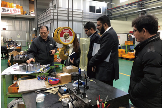 ▲ 인도 엠라(Mla Sales)에서 씨엠티이 대구 공장을 방문해 제품 설명을 듣고 있다.