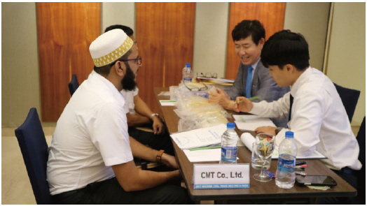 ▲ 씨엠티 남재윤 대표가 인도 첸나이에서 바이어와 상담을 하고 있다.