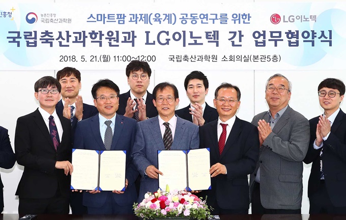 양측은 지난 5월 21일 전라북도 완주군 이서면 국립축산과학원에서 권일근 LG이노텍 CTO(최고기술책임자, 전무), 양창범 국립축산과학원 원장, 문홍길 가금연구소 소장 등이 참석한 가운데 ‘양계 스마트팜 기술개발 공동연구 업무협약(MOU)’을 맺었다.