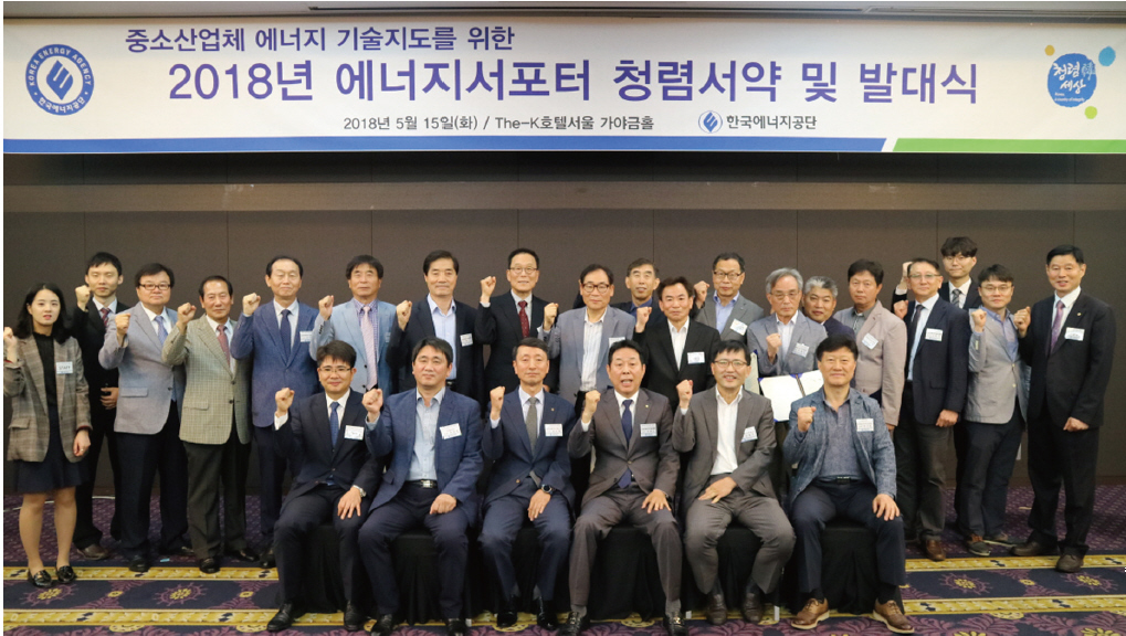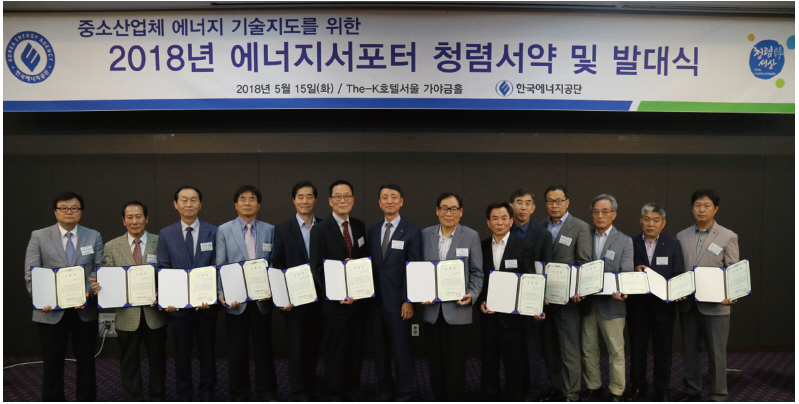 한국에너지공단은 5월 15일, 서울 더케이호텔에서 ‘2018년 에너지서포터 청렴서약 및 발대식’을 개최했다. 에너지서포터 사업은 에너지 부문 전문 인력이 부족한 중소기업에 에너지 전문인력인 ‘에너지서포터’들이 방문해 컨설팅 서비스를 제공하는 사업이다. 이 사업으로 에너지 발전에 중대한 역할을 할 중소기업에 활력이 생길 수 있단 관측이다.