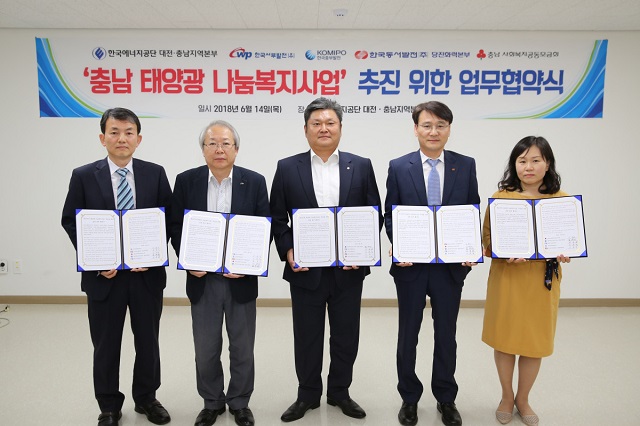 한국서부발전(사장 김병숙, 이하 서부발전)은 지난 6월 14일 한국에너지공단 대전충남지역본부에서 충남지역 태양광 나눔 복지사업 추진을 위한 업무협약을 체결했다.