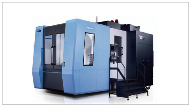 DHF 8000 장비는 상하형 노딩헤드를 장착하여 한 번의 세팅으로 완제품 가공이 가능한 팔레트 800㎜급의 동시 5축 수평형 머시닝센터다.