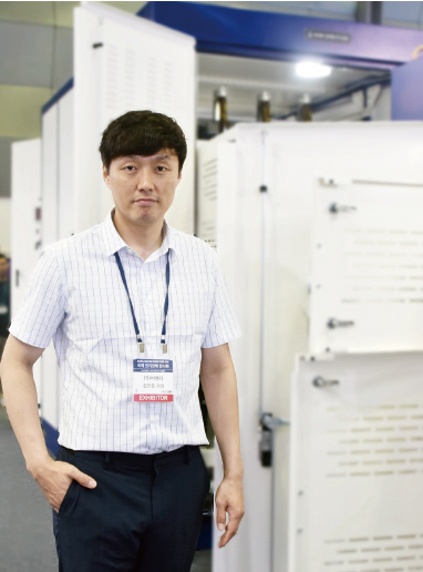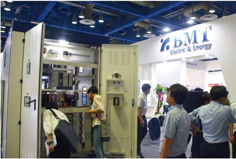 비엠티의 김인중 과장은 콤팩트 스마트 수배전반을 두고 ‘일반 빌딩이나 아파트, 발전소 설비에 전력을 유용하게 공급하고 받을 수 있는 제품’이라고 소개했다. 김 과장은 “이 제품의 경우 기존 수배전반과 비교해 설치공간을 40%가량 절감할 수 있다”면서 “공간이 협소하거나 비용적인 측면에서 강점을 갖고 있다”고 설명했다. 이어 그는 “콤팩트 스마트 수배전반은 전기 분야기 때문에 안전에도 당연히 신경을 썼다. 안에 있는 부스바 모두 절연체로 쌓여있기 때문에 안전한 제품이라고 자신 있게 말할 수 있다”고 자신감을 내비쳤다.