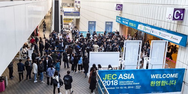 JEC ASIA 국제 복합 소재 전시회는 11월 14일부터 16일까지 서울 코엑스 C1,C2홀 및 D1홀에서 개최되며 자동차, 항공우주, 재생 에너지, 건축 건설, 전기 전자 장비, 스포츠 레저, 운송 등 다양한 분야의 엔드-유저 시장에 초점을 맞춰 전시회와 더불어 아시아 복합소재 시장을 위해 최고 수준의 컨퍼런스를 3일 동안 진행하여 자동차 및 항공우주 분야의 복합소재의 최신 응용을 집중 조명한다.