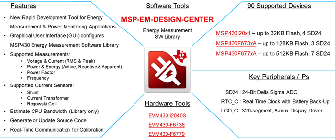 TI의 MSP430 마이크로컨트롤러(MCU) 중 하나를 사용하면 전력과 전력량을 쉽게 계산할 수 있다. MSP430F67xxA 및 MSP430i20xx MCU는 고성능 24bit 시그마-델타 아날로그-디지털 컨버터 및 AC 파형을 캡처하고 처리하여 전력, 전력량과 다른 파라미터를 계산하는 기타 통합 아날로그 및 디지털 모듈을 포함한다.