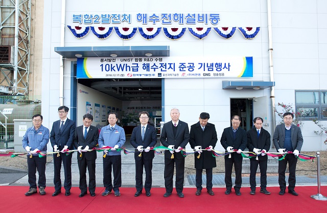 UNIST와 한국동서발전(사장 박일준)은 지난 12월 17일 오후 3시, 울산화력본부에서 ‘10kWh급 해수전지 ESS 설비’ 준공 기념행사를 열었다. 이날 행사에서 참석자들은 지난달부터 시작한 해수전지 ESS 설치작업의 경과를 살피고, 실증설비와 시제품을 살펴보는 시간을 가졌다.