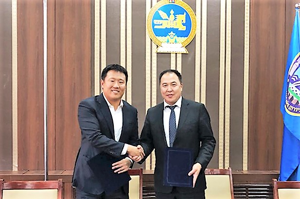 ▲글로벌 블록체인 기업 테라가 몽골의 수도 울란바토르시(市)와 모바일 결제 인프라 구축 사업 협력에 대한 업무협약(MOU)을 체결했다. 협약식 후 테라 신현성 대표(왼쪽)와 라드나바자르 초이진삼부 날라흐구(區) 의회장이 기념촬영을 하고 있다.