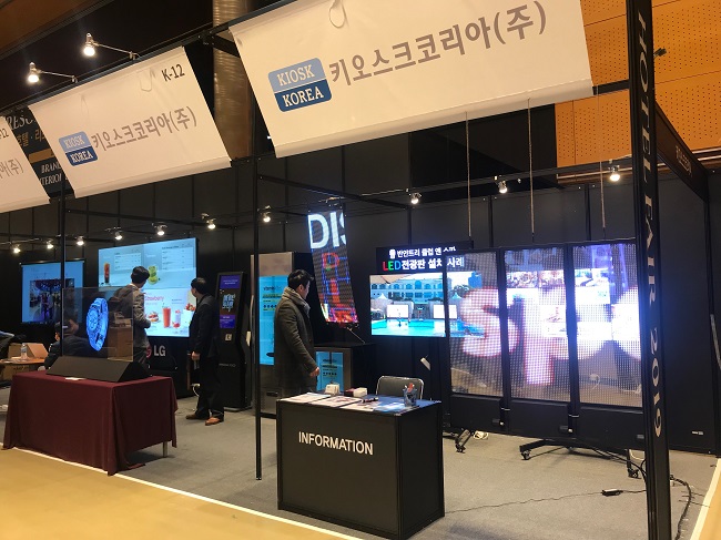 또한 투명 디스플레이 시장을 선도하는 업체에 걸맞게 투명 LCD(ICE Series), 투명 LED(ICE Flex Series) 제품과, LED 전광판, 학교나 회의실용 전자칠판과 전자교탁, 플렉시블(flexible) LED 등 키오스크코리아의 다양한 제품들을 선보여 눈길을 끌었다.