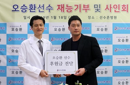 오승환 선수는 이 날 행사에서 후원금 전달식 및 재능기부, 사인회를 가지며 뜻깊은 시간을 보냈다. 재활 경험이 있는 오승환 선수는 선수촌병원 환자들을 대상으로 트레이닝, 투구 방법 등의 노하우를 알려주고 재활치료 중인 프로선수 지망생들을 격려하며 특별한 만남을 가졌다.
