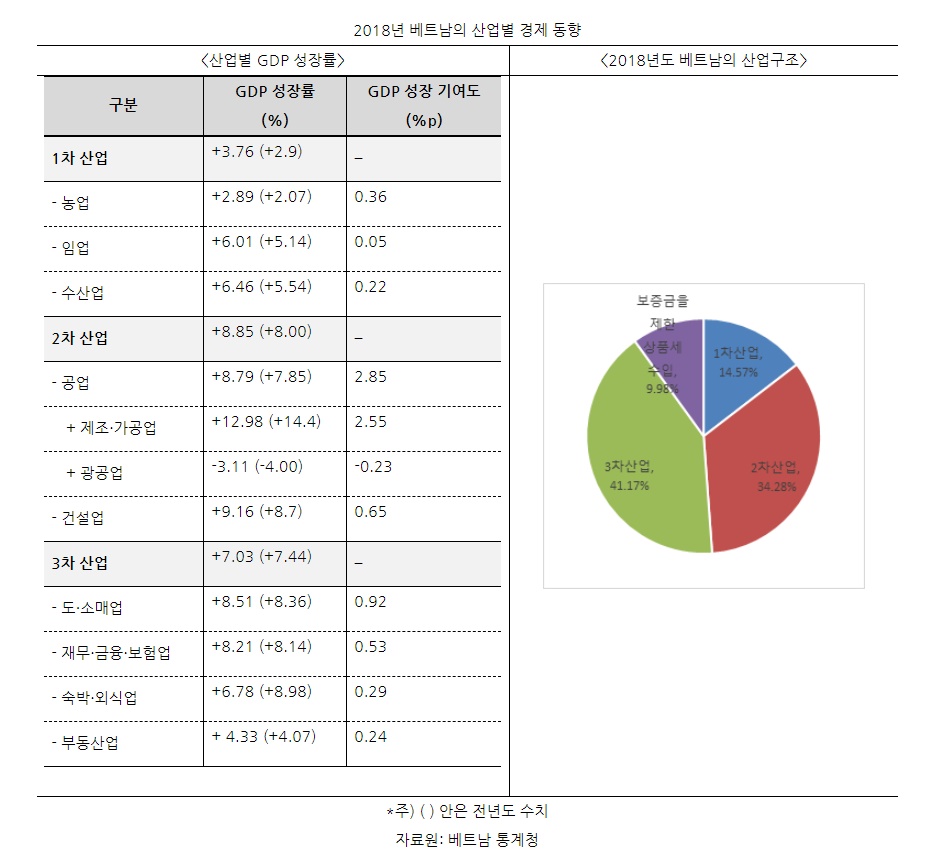 베트남은 올해 1월 1일, ‘2019년 경제 사회 개발계획 결의안’(Resolution No. 70/2018/QH14)을 통해 올해 경제 성장 목표를 6.8%로 확정했다. ’18년 FDI 기업의 생산 및 수출 호황, 내수 경제 활성화 등으로 연초 예상했던 목표 성장 6.5~6.7% 보다 높은 7.08%의 경제 성장률을 달성하면서 2019년도에는 상향된 6.8%의 경제 성장률을 결정한 것으로 풀이된다.