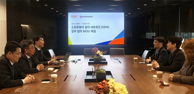 양사는 이달 12일, 여의도 HPE 사옥에서 국내 SDN 사업 협력을 위한 업무협약(MOU) 체결식을 가졌다. 이번 협약을 통해 아루바는 자사의 네트워크 제품과 아토리서치의 SDN 솔루션을 연동해 기업, 공공기관 등의 고객을 공동으로 발굴해 나갈 예정이라고 밝혔다.